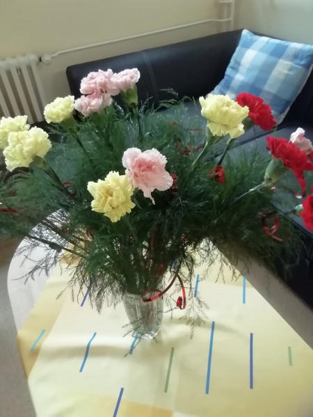 A opäť tu máme MDŽ- sviatok žien. Pán riaditeľ si všetky naše klientky, ale aj zamestnankyne uctil kytičkou a slovami uznania, ktoré každú ženu potešia.