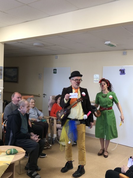 Našich seniorov prišli v tomto zimnom období opäť pozdraviť a rozveseliť zdravotní klauni – Červené nosy.Boli to umelci, ktorí priniesli so sebou svoj talent, vášeň a nekonečnú lásku k tomu, čo robia.Svojou prítomnosťou naplnili našich prijímateľov pozitívnou energiou a priniesli im veľa krásnych momentov. Tešíme sa na ďalšie stretnutie.