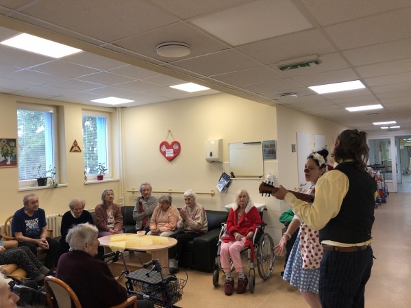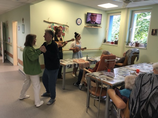 Do nášho zariadenia zavítali milí Klauni Červený Nos, ktorí priniesli v májovom duchu nielen farby a veselosť, ale aj obrovskú dávku láskavého humoru a ľudského tepla. Ich vystúpenie bolo sprevádzané spevom známych piesní, smiechom a spontánnouradosťou, ktorá naplnila všetky kúty nášho zariadenia.