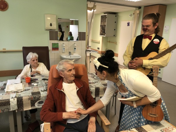Do nášho zariadenia zavítali milí Klauni Červený Nos, ktorí priniesli v májovom duchu nielen farby a veselosť, ale aj obrovskú dávku láskavého humoru a ľudského tepla. Ich vystúpenie bolo sprevádzané spevom známych piesní, smiechom a spontánnou