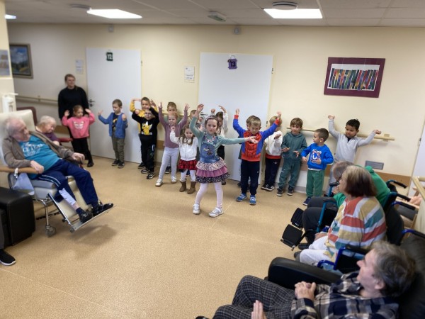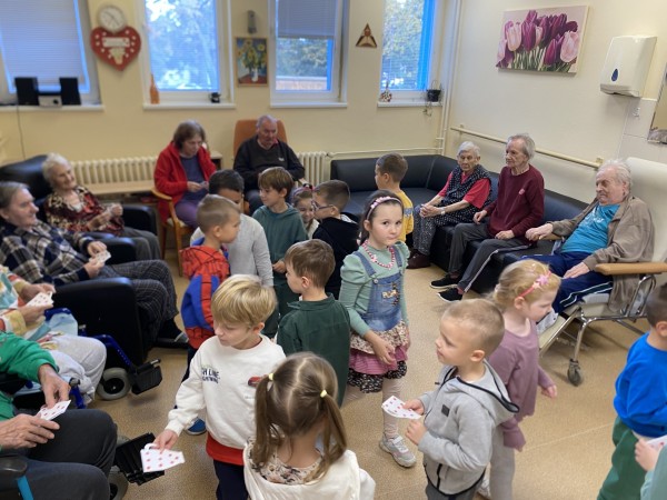 Pri príležitosti Mesiaca úcty k starším nás potešili svojou návštevou deti z MŠ Rakarenská. Svojim krásnym vystúpením, spevom, tancom a recitáciou rozžiarili tváre našich klientov úsmevmi a priniesli do zariadenia radosť a dobrú náladu. Na záver si deti so seniormi vymenili malé darčeky, čím vyjadrili vzájomnú úctu a spolupatričnosť.